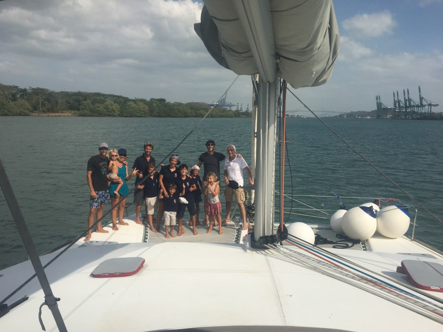 Arrivee à 6:30 devant la première écluse. Maintenir les trois bateaux droits n’est pas une mince affaire, c’est parfois tendu et le mono frôle dangereusement le mur à un moment … les deux autres écluses s’enchaînent , nous arrivons au lac Gatun. Nous en profitons pour lancer le …CNED (oui, nous assumons , nous sommes des parents absolument indignes !) Elodie se solidarise, les grands travailleront jusqu’au déjeuner .