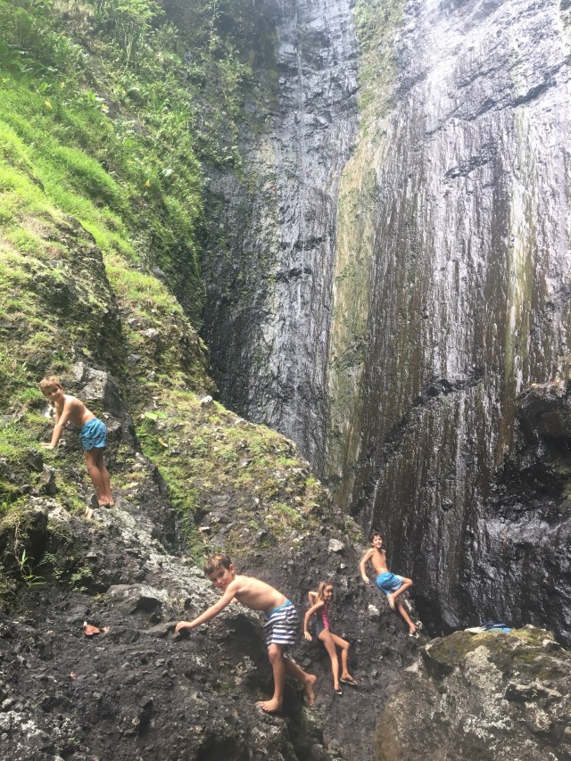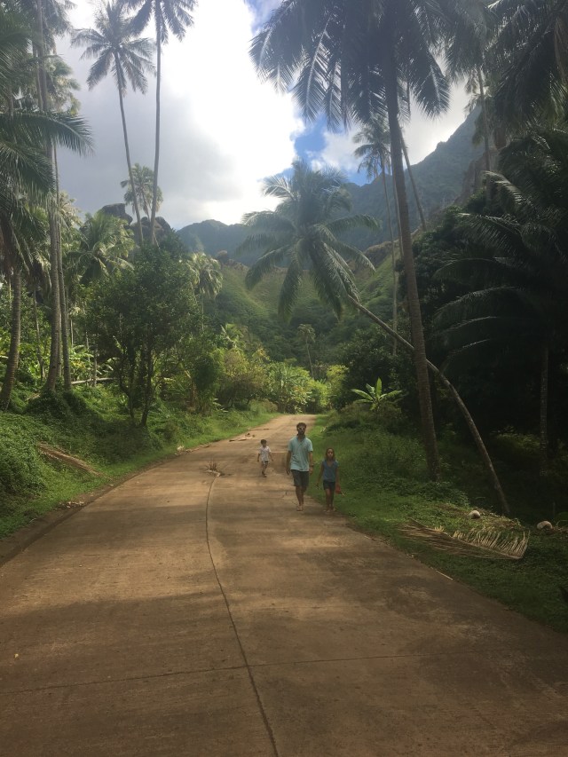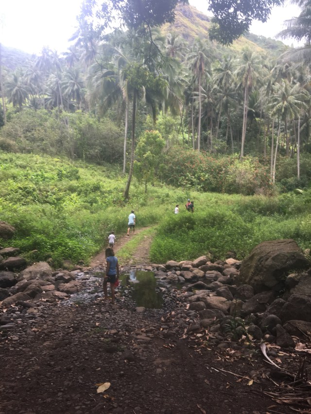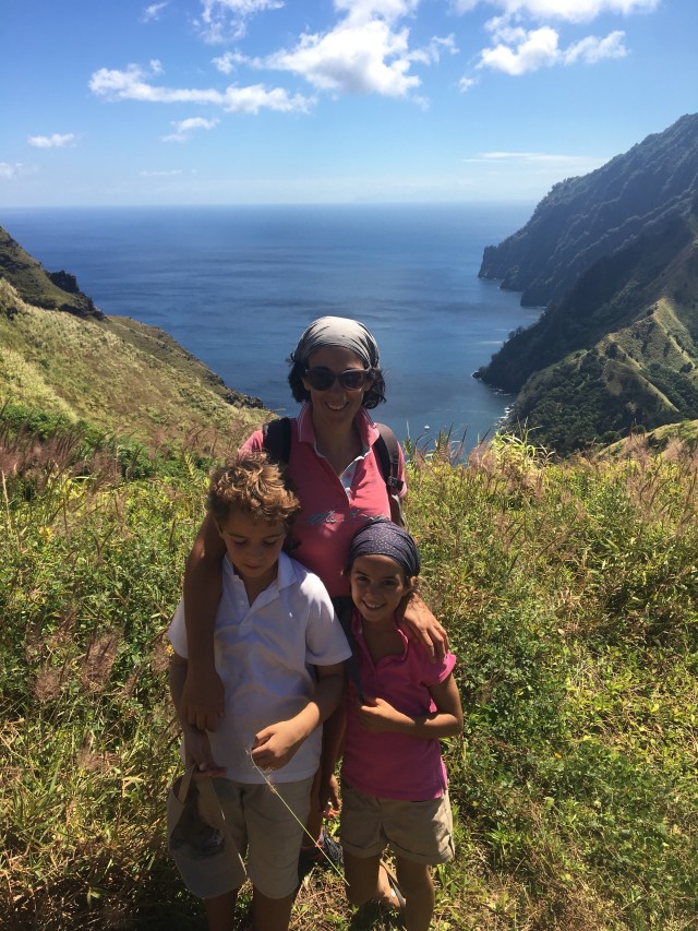 Nous profitons de cette belle île de Fatu- hiva pour nous dégourdir les papates après 19 jours sur l’eau. Promenade jusqu’à la cascade le premier jour… ça grimpe pas mal mais le décor est grandiose. Les tontons montent jusqu’au belvédère et reviendront les jambes (et le fessier ) en compotes!