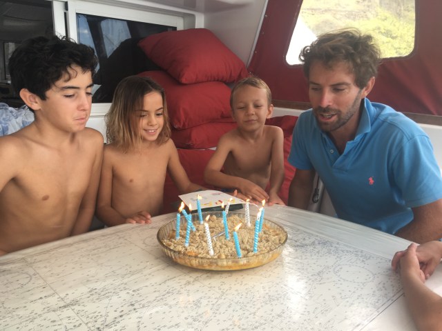 Le lendemain Manu prend une lancha pour aller à l’île voisine qui a un aérodrome, juste à temps pour les 6 ans de sa fille aînée , ouf!