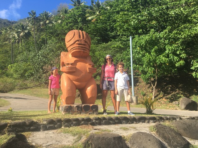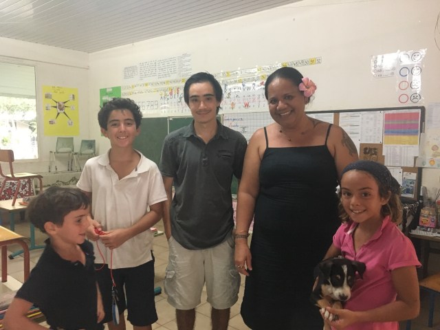 Nous dînons le soir chez une famille, de la chèvre, des frites d’arbre à pain, du poisson à la tahitienne …cela nous change des pâtes au thon 😉 le mari est à la fois dentiste, agent de sécurité et guitariste à la messe!