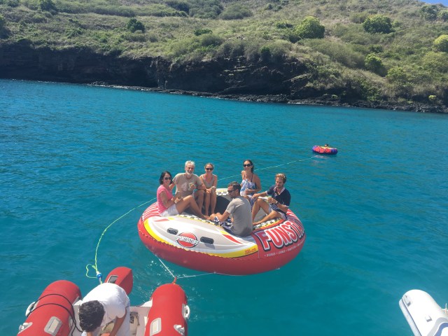 on a du mal à compter le nombre d’enfants, on retrouve la joie de se baigner. Nous pouvons enfin sortir l’énorme bouée offerte par Inaitak, parfaite pour les enfants et très appréciée par les parents pour l’apéritif !